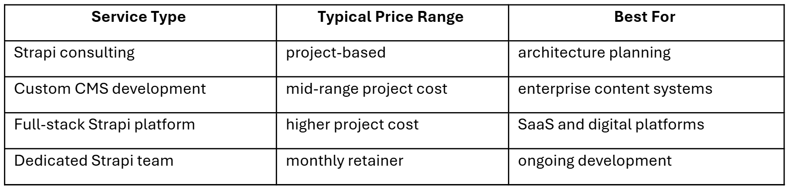 For most companies launching headless CMS platforms, working with a specialized Strapi agency provides the best balance of cost, expertise, and delivery reliability.
