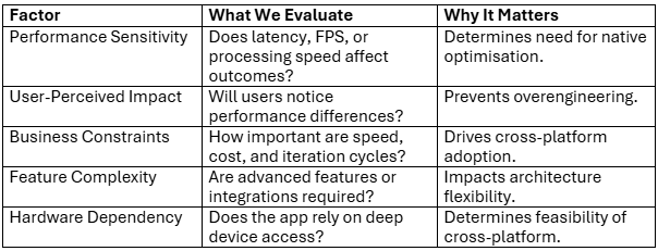 - If multiple factors are High: Native becomes necessary