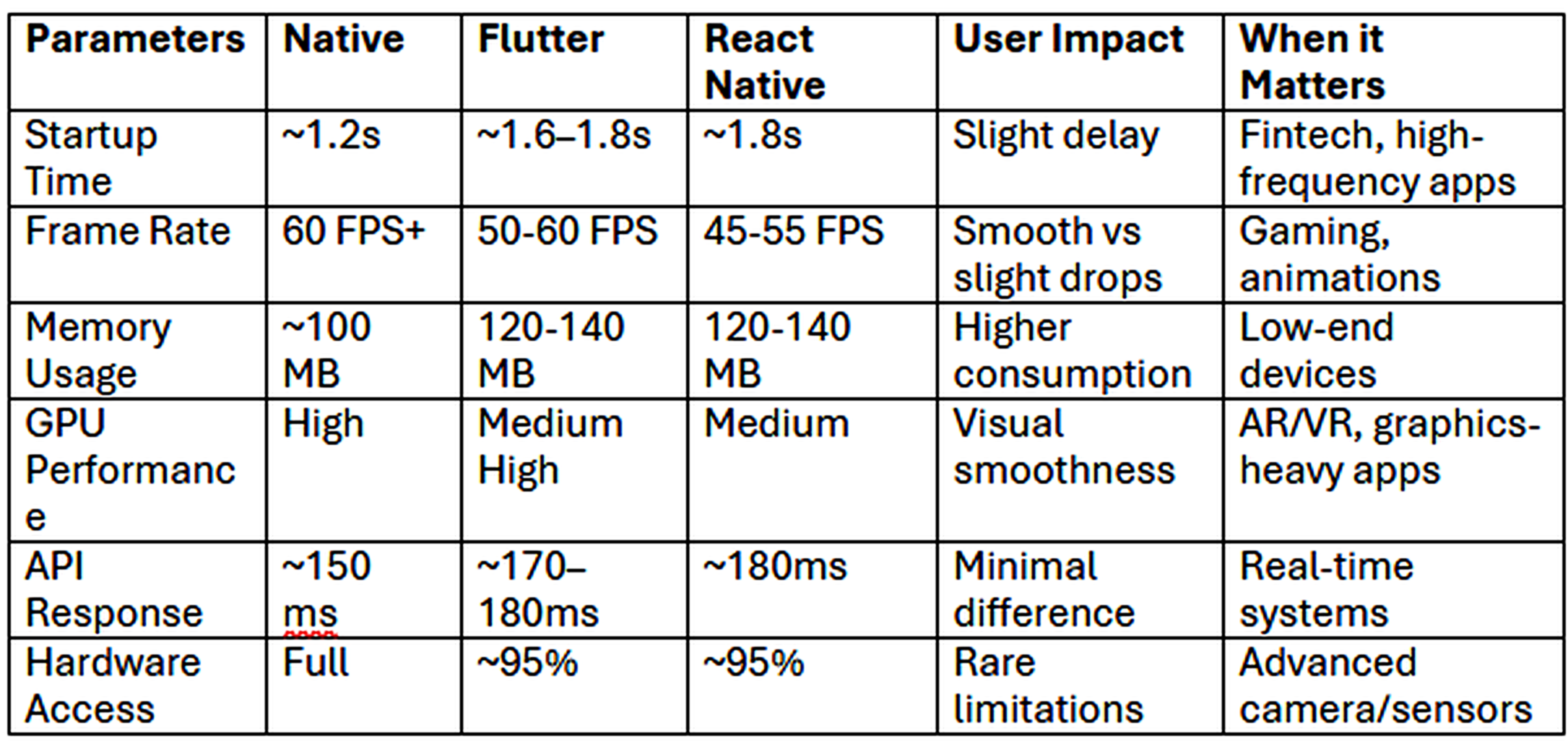 - Cross-platform frameworks introduce additional processing overhead
