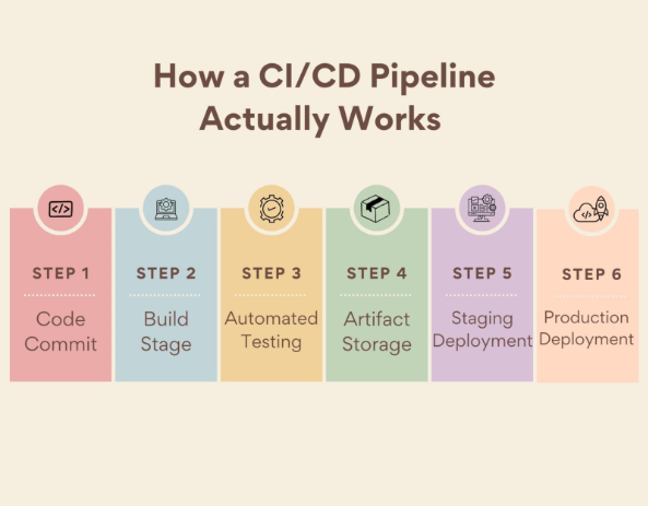 A CI/CD pipeline is an automated process that builds, tests, and deploys software whenever developers update code. Instead of waiting weeks for manual releases, changes move through automated stages such as build, testing, and deployment, enabling faster and safer software updates.